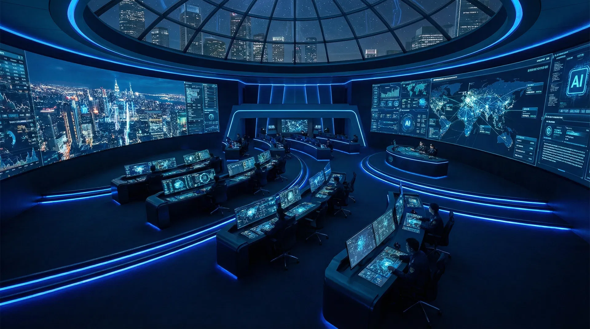 3D holographic city map with real-time camera locations, alert zones, and incident tracking. See your entire city's security posture at a glance.